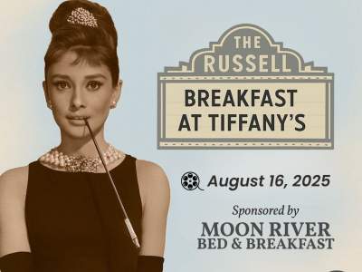 Step back in time for a special screening of Breakfast at Tiffany’s at The Russell Theatre in Maysville, Kentucky. Sponsored by Moon River Bed and Breakfast—celebrate Audrey Hepburn, classic cinema, and timeless music.