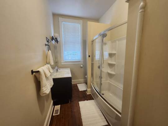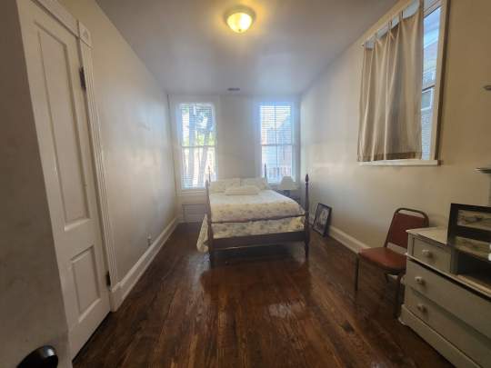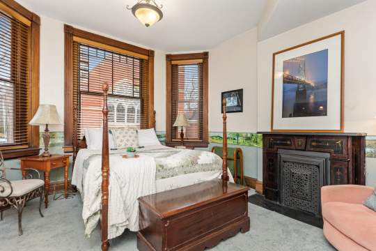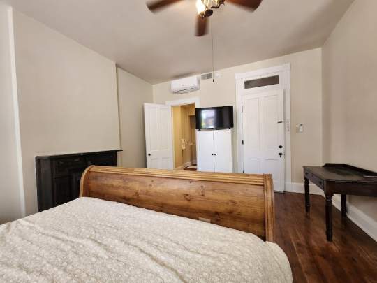 Bright and restful, the Second Floor Front room is your own private escape. With a plush queen bed and oversized shower, it offers both comfort and charm. Ideal for guests who enjoy spacious comfort, natural light, and a charming view of the historic neighborhood.