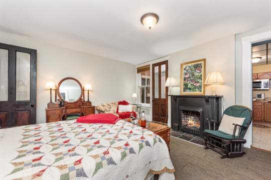 Spacious and convenient, this First-floor suite makes comfort easy. With no stairs to climb, it’s the perfect choice for those who want accessibility and ease. A deluxe queen bed and private bath make it both cozy and practical.