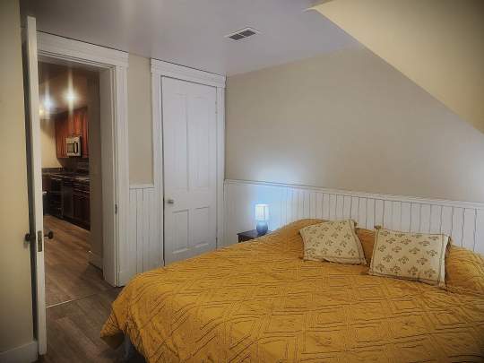 Perched high above it all, the Top Floor Suite is a private retreat filled with space and comfort. A deluxe king bed anchors the room, inviting you to rest deeply after climbing the few steps to your own cozy getaway. Ideal for guests who want extra space and privacy.